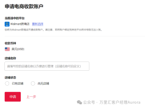 2.在「申请电商收款账户」页面,选择【Walmart 跨境店】