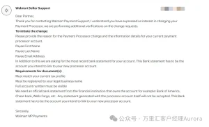 若收到沃尔玛要求针对换绑信息和营业执照收集的邮件,需再次提交相关信息,以便账户解绑确认。