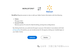 4.授权失败:若店铺授权失败,需检查万里汇与沃尔玛的企业信息是否一致,重新发起授权。