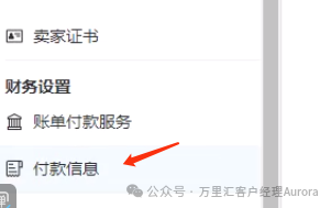 l方式二:卖家后台侧边栏→财务设置→付款信息